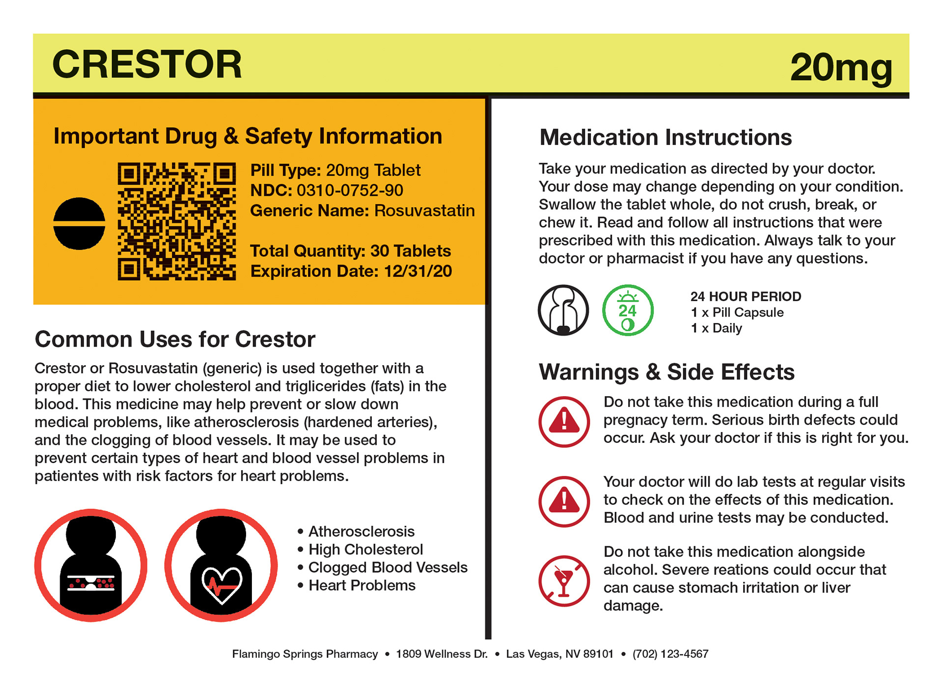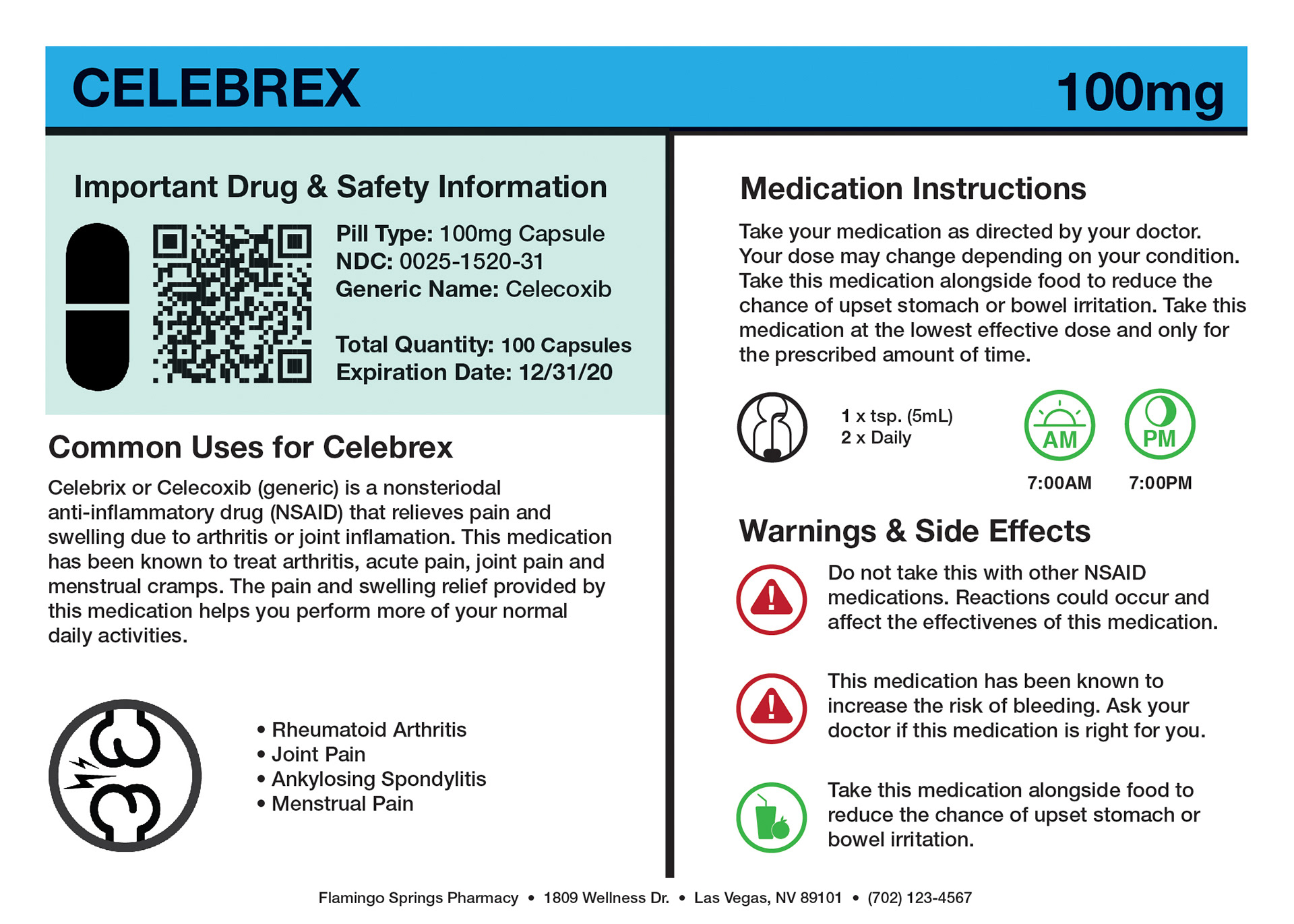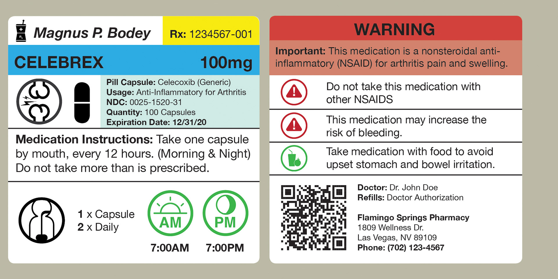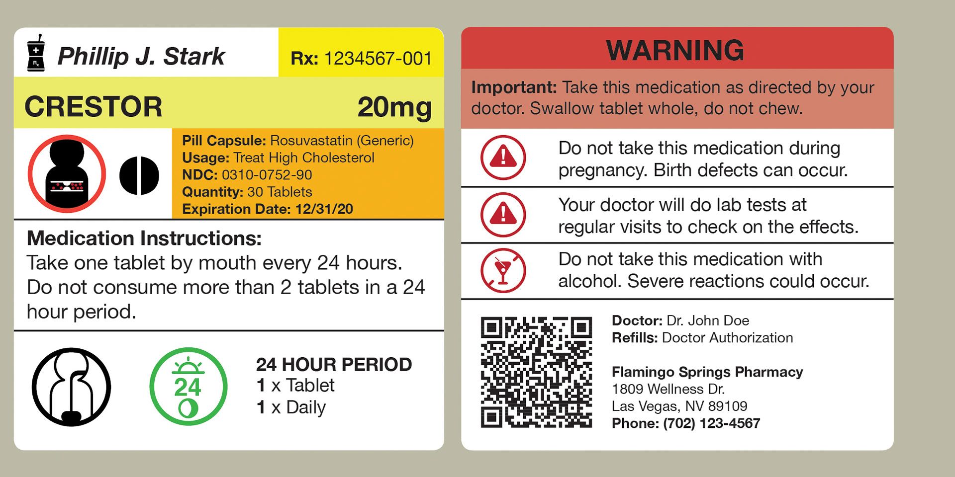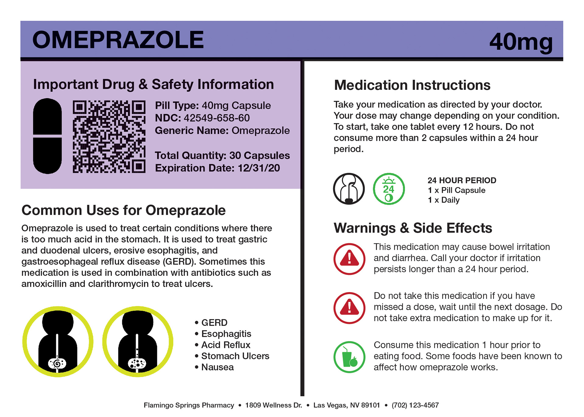 In doing so, I have created a labeling system that utilizes space efficiently, including the essentials and leaving out the unnecessary. Using a symbol system translates well across most language barriers and could potentially make it easier to understand for people that don't speak english. Concise instructions such as dosage and warnings are made clear. If specific drug information, medical terminology, or patient information is needed, a QR code can be scanned easily by any iOS or Android device to access it. An included Patient Medication Guide is also provided alongside your medication that provides additional information about your medication.